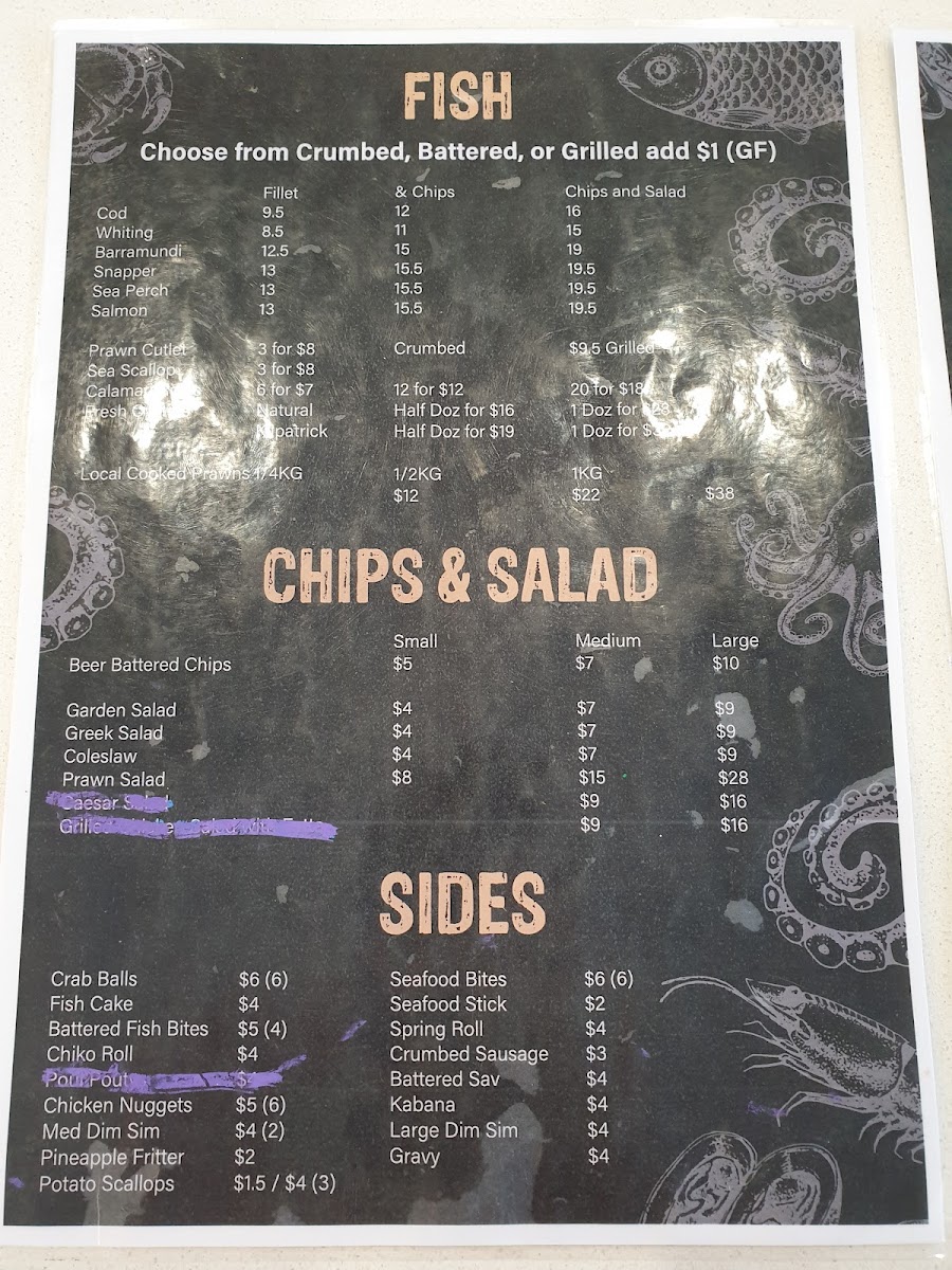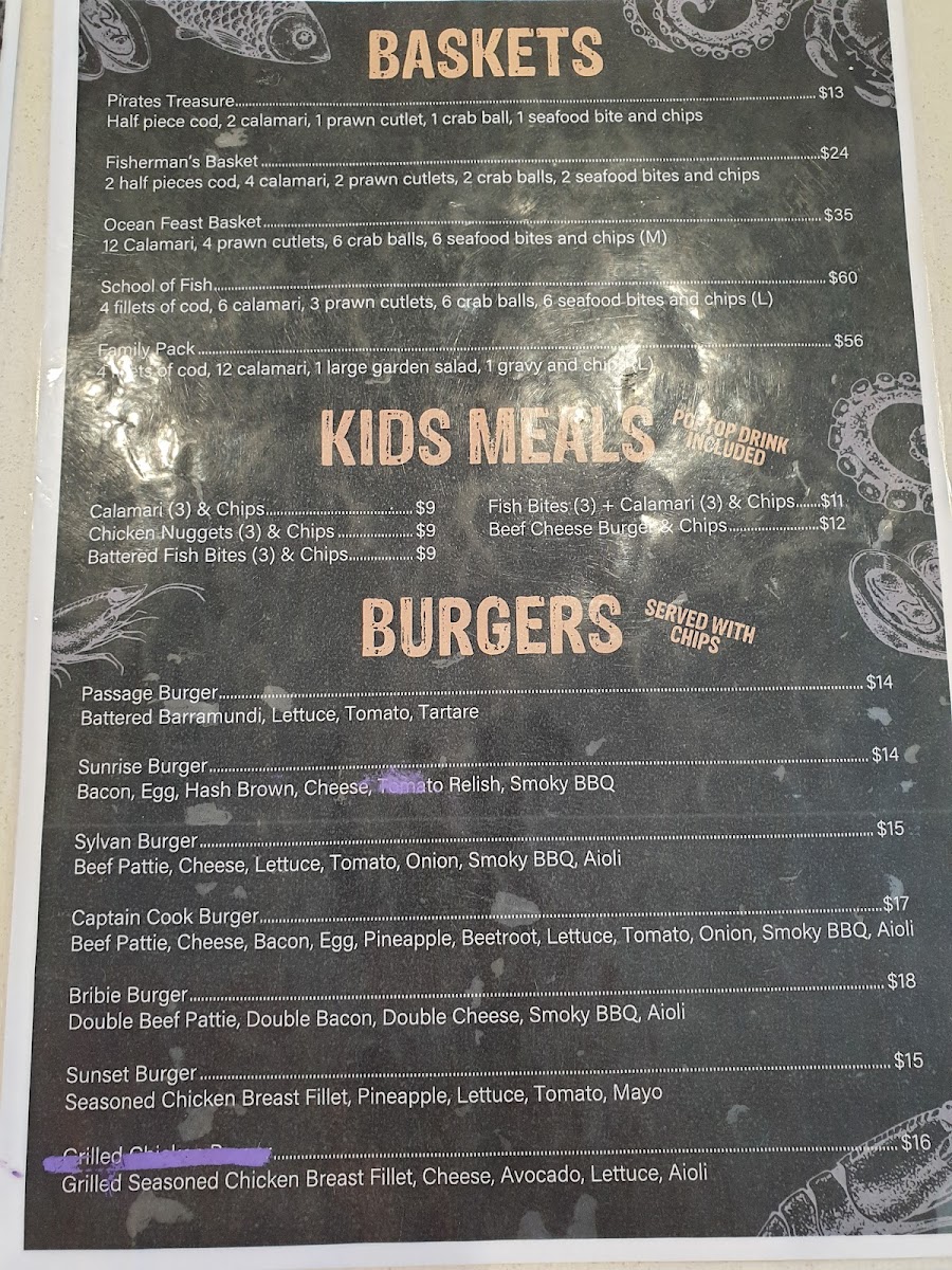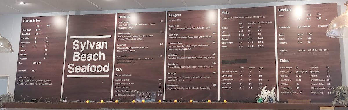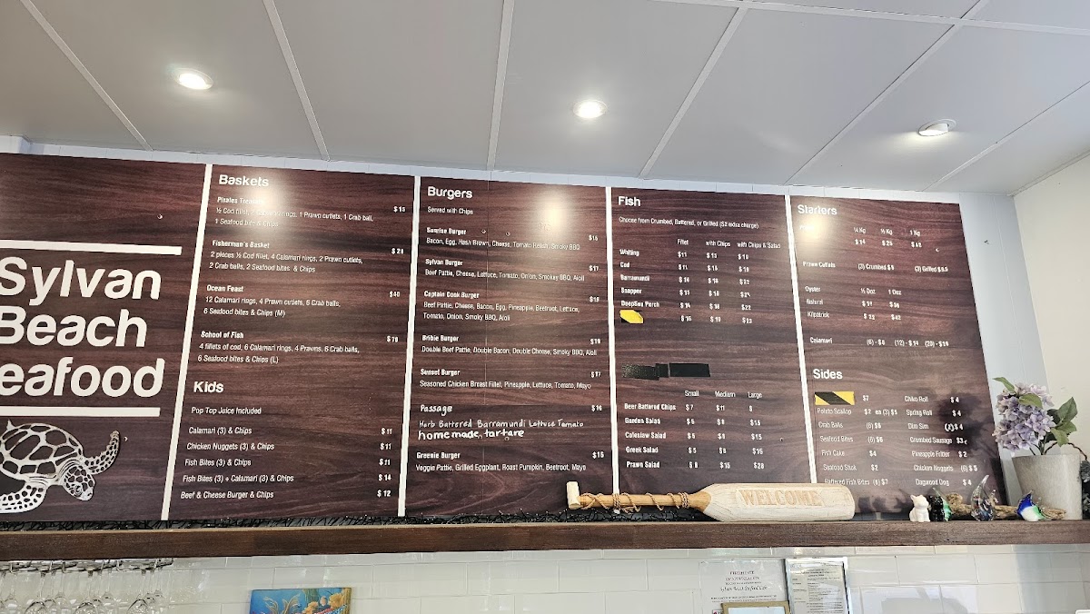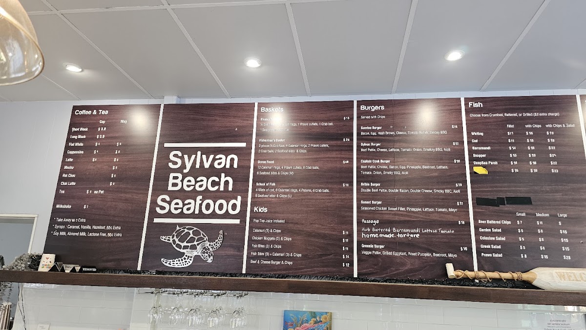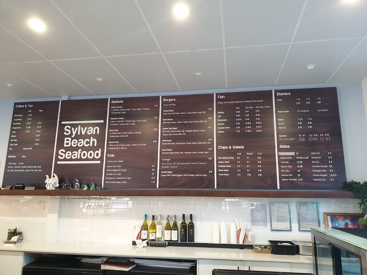 Welcome to the Sylvan Beach Seafood Cafe, where our menu beckons you to indulge in the freshest offerings from the sea right here at 11 Marine Parade, Bellara QLD 4507, Australia. Dive into our mouthwatering specialties like the classic Fish and Chips, or savor the taste of our Snapper Chips and Salad—a true coastal delight. For those who can't resist a touch of luxury, our Seafood Platter and Oysters promise a taste sensation you won't forget. Don’t miss our hearty Bribie Burger and seductive Sylvan Burger, perfect for burger lovers. Pair your meal with a refreshing Shiraz Sundowner or a glass of wine to elevate your dining experience. Whether you're craving a Fisherman's Basket or the crunchy delight of Battered Cod and Chips, our Very Fresh Greek Salad adds a lovely balance to your meal. Come and see why the Sylvan Beach Seafood Cafe is the perfect spot for a beachside feast!